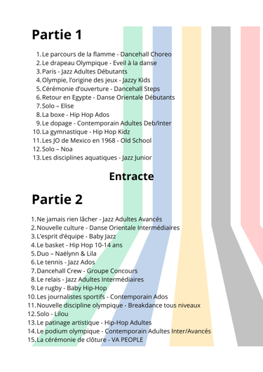 Découvrez le programme de Dimanche pour le Gala de danse 2023-2024.